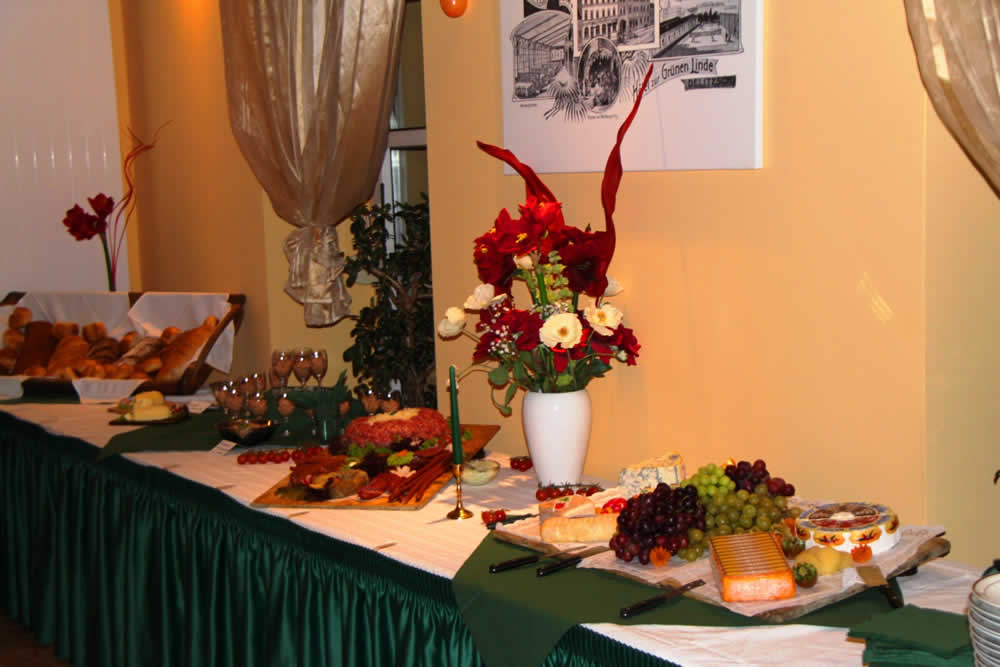 Wir unterbreiten Ihnen Menüvorschläge, beraten Sie bei Ihren kaltem oder kalt-warmen Buffet, backen Ihnen Kuchen für Ihre Kaffeetafel (Kuchen darf auch mitgebracht werden) oder sind bei der Suche nach passender Musik (z.B. DJ.) behilflich.